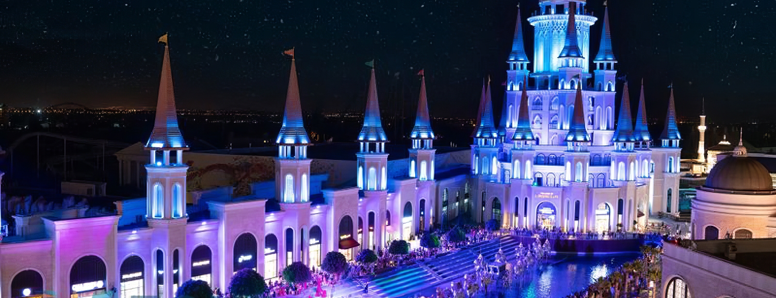 На центральной площади парка, рядом с дворцом турецкого султана вас ждет костюмированное представление-карнавал с чарующими танцами сказочных героев, шоу поющих фонтанов, праздничное шествие гондол – персонажи сказок, ожившие цветы, королева и принцесса. Красивые фейерверки, с крыш слетают миллионы мыльных пузырей кружась как в танце и заполняя собой все пространств. Вы погрузитесь в невероятную атмосферу волшебного мира фантазий, станете участником головокружительного театрального представления, оказавшись в центре невообразимого по своим масштабам действия